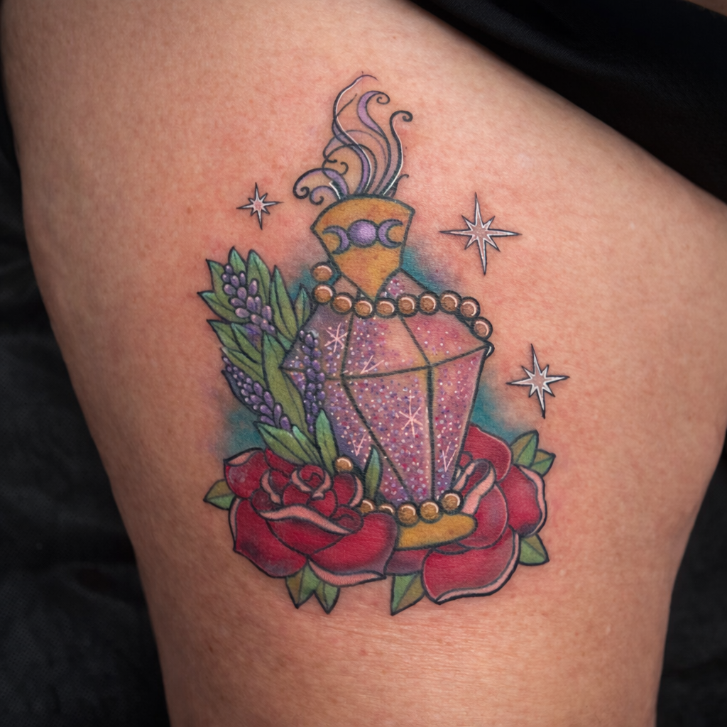 "Sarah made my tattoo experience so enjoyable and easy! Her glitter work is absolutely amazing, and she perfectly captured what I envisioned."
