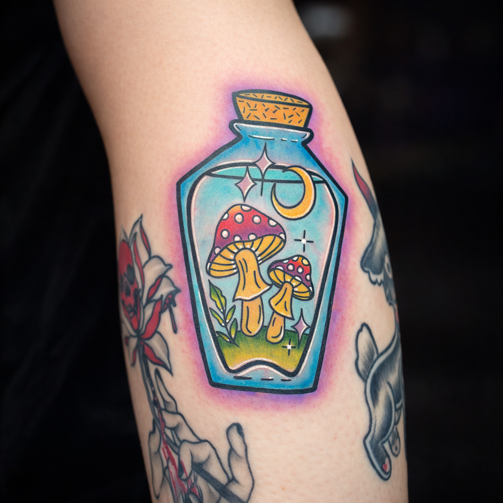 Discover Sarah's unique artistic vision at A Quiet Mind Tattoo and Piercing Therapy, where bright colors and dazzling glitter bring your tattoo dreams to life. Explore her passion, experience, and dedication to crafting beautiful, lasting art.